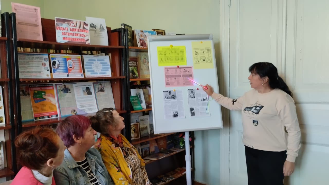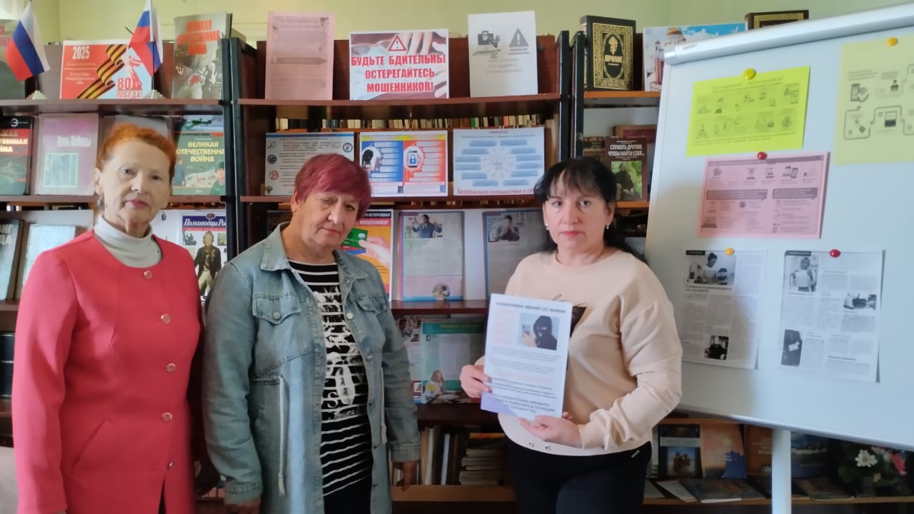 В связи с увеличением числа случаев мошенничества и для профилактики подобных ситуаций среди членов общества инвалидов в Межпоселенческой центральной библиотеке был проведён информационный час под названием «Безопасность прежде всего». Библиотекарь предупредила присутствующих о распространённых и новых методах обмана мошенников. В ходе беседы она посоветовала всем быть предельно бдительными и осторожными и объяснила, как вести себя в различных ситуациях, чтобы не стать жертвой мошенников. Кроме того, было рекомендовано не доверять незнакомым людям, которые приходят в частные дома, и проверять всю информацию, поступающую с мобильных телефонов.