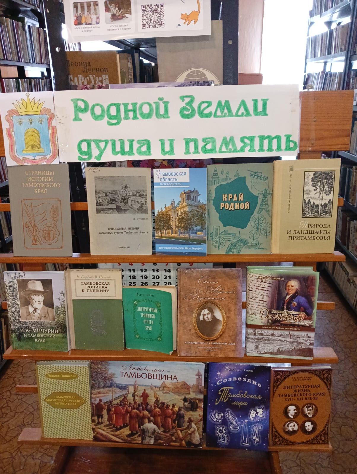 Посетителям старшего возраста будет интересна книжная выставка “Родной земли душа и память”, раскрывающая историю становления и развития Тамбовского края.