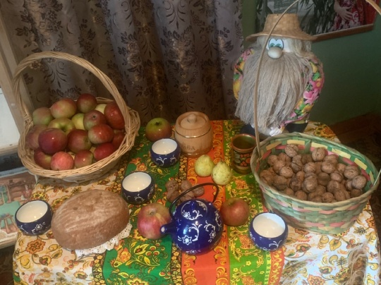 Присутствующим рассказали, что в старину в августе праздновали три Спаса. Первый был посвящен новому урожаю мёда и назывался Медовый. Второй назывался Яблочным, после этого праздника можно было есть свежие яблоки. Третий Спас – Хлебный или Ореховый, потому что пекли первый каравай из муки сжатой пшеницы; в конце августа созревали орехи. Рассказали об истории празднования Спаса на Руси. «Спас». Что в нём слышится? – Спасти, припасти, спасибо… так было и в старину: собирали урожай, чтобы припасти его на весь год, спасти свою семью от голода, жить в достатке. Кланяясь земле, молились, освящали новый урожай и говорили: «Спасибо». Это очень красивые, добрые, «вкусные» праздники. Они помогают формировать живой интерес к традициям отечественной культуры, учат заботиться о ближних, оказывать им внимание, делиться угощениями. На празднике звучали народные песни и стихи. Гостей мероприятия угощали свежими яблоками и горячим чаем с яблочными пирогами.