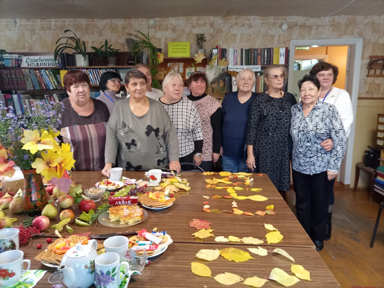 В тёплой, дружеской обстановке за ароматным чаем гости слушали стихи и песни об осени, принимали участие в различных конкурсах и викторинах, вспоминали интересные истории из жизни. Колобова О.И. прочла стихотворение Л.Рубальской о возрасте.
