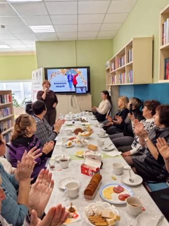Встреча началась с теплых слов поздравления от директора библиотеки. Затем для гостей провели конкурс «Угадай мелодию». Продолжением праздника стало чаепитие, во время которого гости смогли пообщаться в непринужденной обстановке. В перерывах для гостей звучали песни в исполнении сотрудников библиотеки. Ну и конечно, не обошлось без подарков.