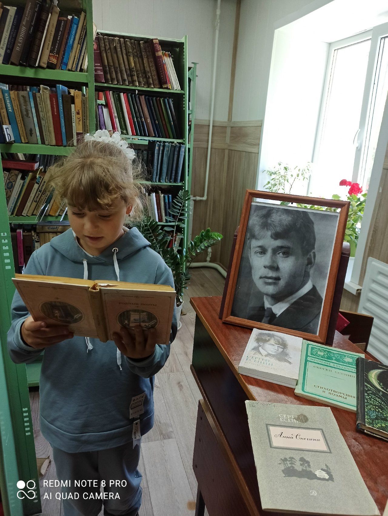 📌К 130-летию дня рождения Сергея Есенина в Желановском сельском филиале оформлена книжная выставка “Звучат Есенинские строки”. Родился Сергей Александрович 21 сентября (3 октября) 1895 года в с. Константиново Рязанской губернии в семье крестьянина. 📌В биографии Есенина важно выделить, что образование им было получено в местном земском училище (1904–1909), затем до 1912 года – в классе церковно-приходской школы. В 1913 году поступил в городской народный университет Шанявского в Москве. Читатели библиотеки познакомятся с различными изданиями произведений. Его стихи о родном крае, о любви, о России известны всем со школы . Ученица 3 го класса прочитала стихотворение “Белая берёза”.