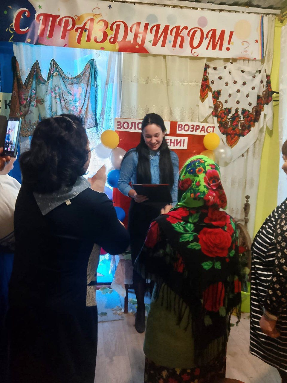 Старшее поколение с радостью поздравили специалисты Территориально Отдела села Спасское Ольга Васильевна и Инна Ивановна , Депутат Совета депутатов Староюрьевского муниципального округа Тамбовской области Татьяна Николаевна, библиотекарь Спасской сельской библиотеки Мария Александровна.