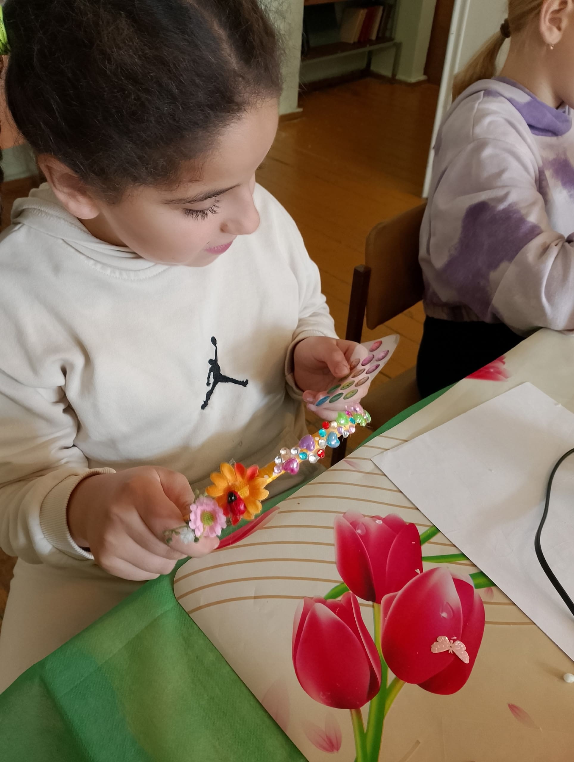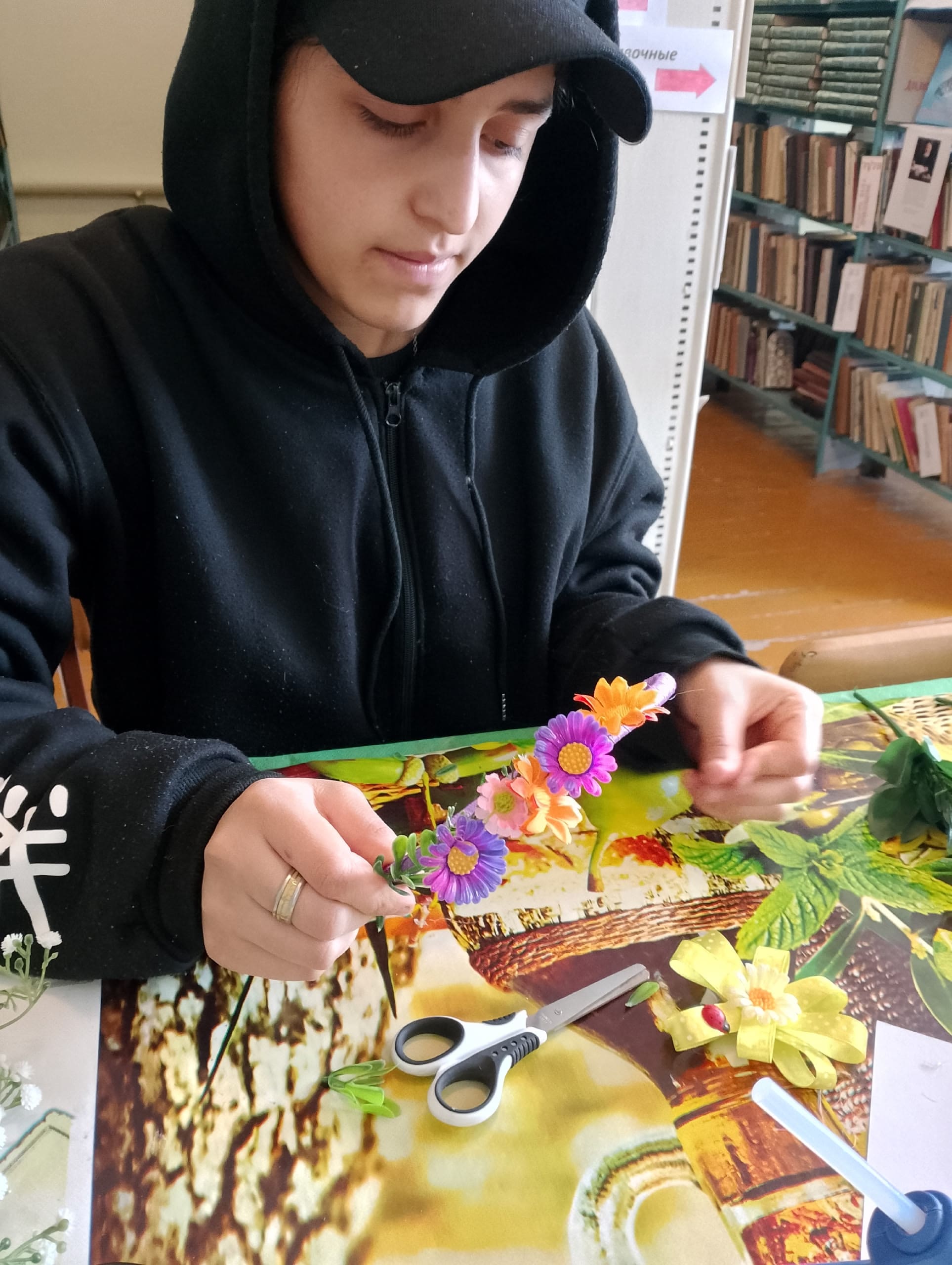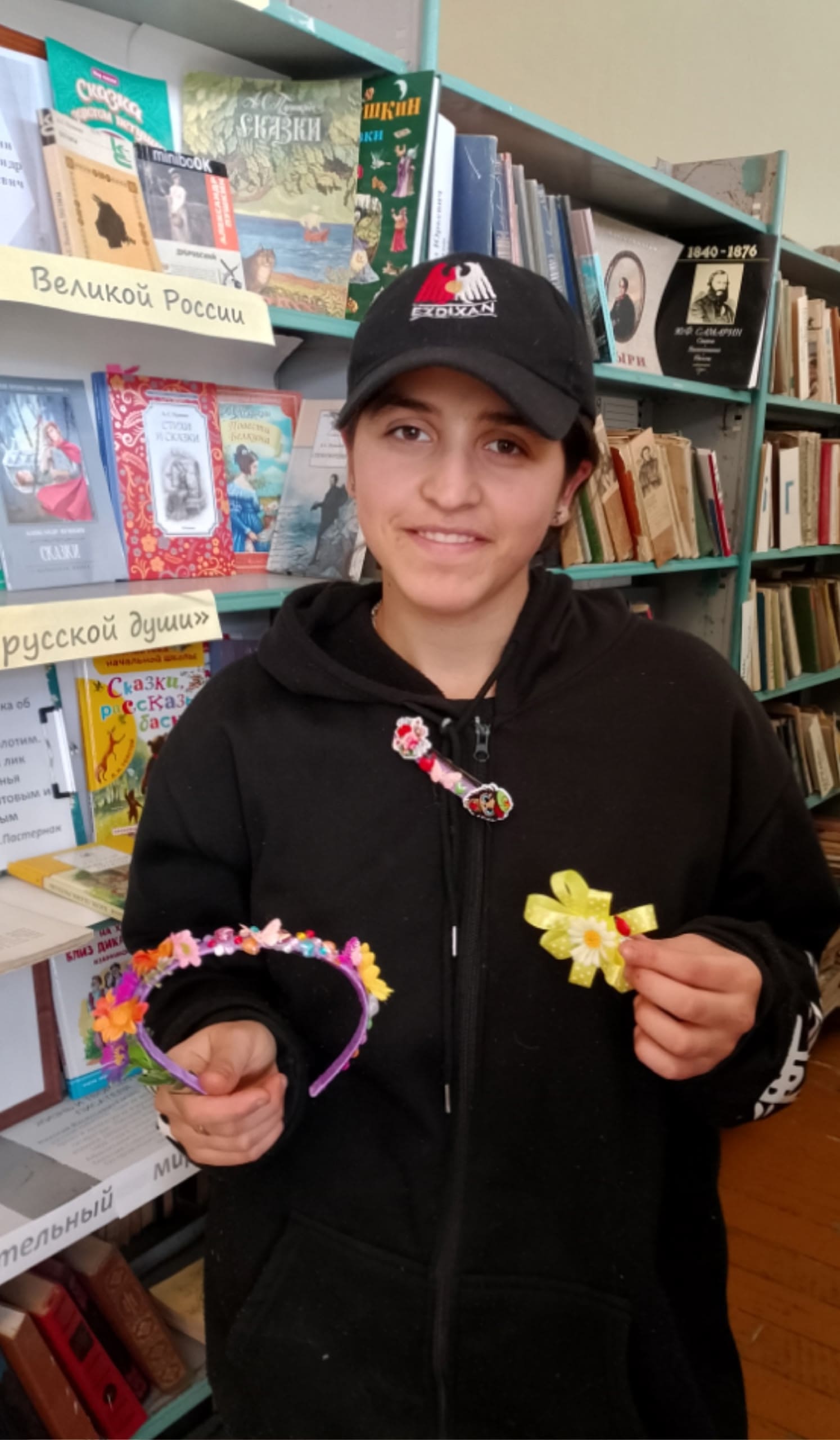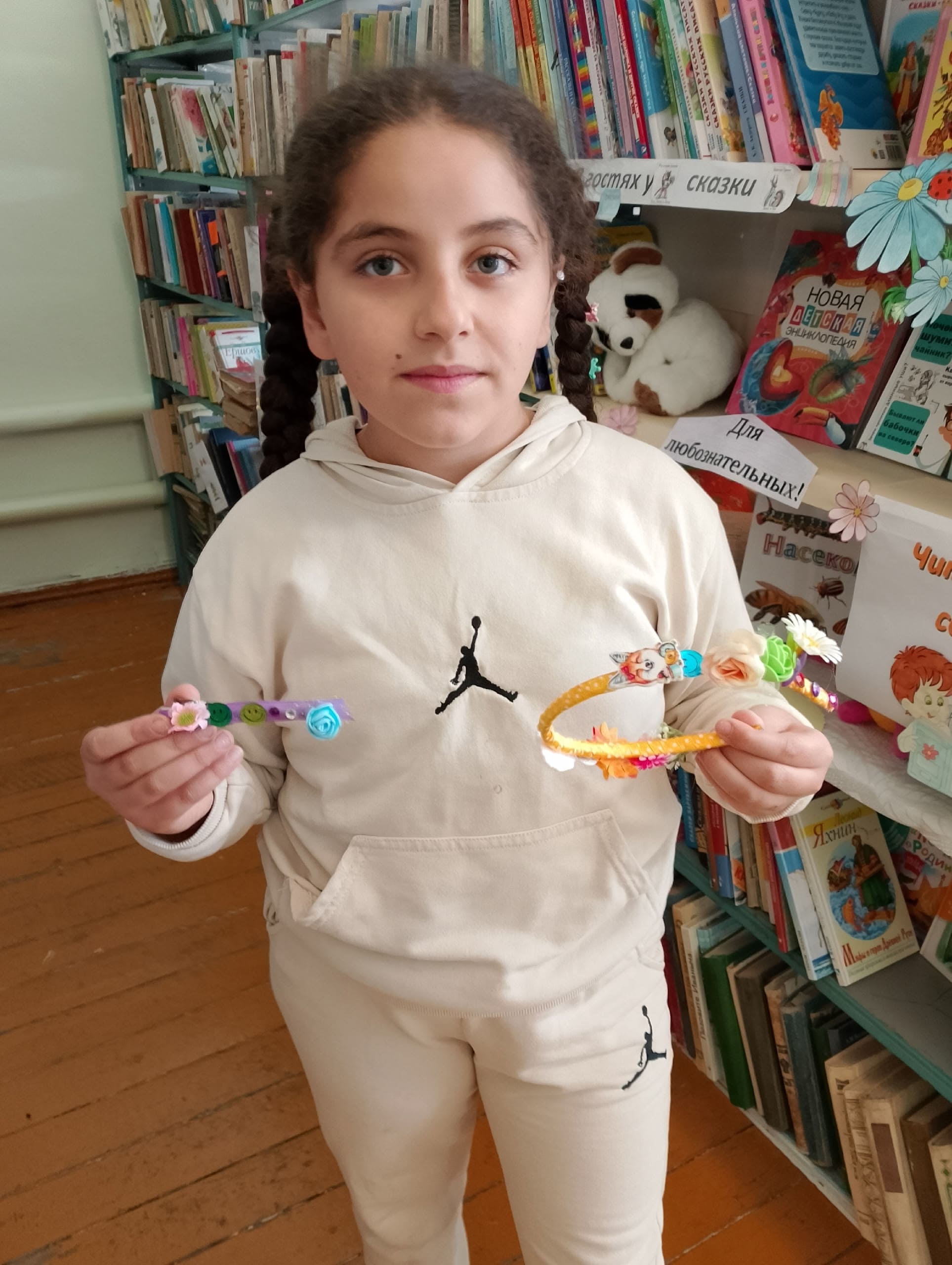 Мастер-класс по изготовлению изящных украшений для волос провел для ребят сотрудник библиотеки.