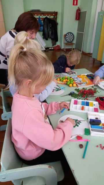 В завершение мероприятия была проведена творческая работа «Веточка рябины» в технике «Пластилинография». Это способ лепки, при котором пластилин накладывается тонкими слоями на картон или бумагу, создавая эффект живописи. Дети с удовольствием принялись за работу, старались сделать всё красиво и аккуратно. В результате замечательные рябиновые веточки получились!