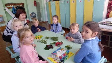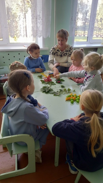Оксана Фролова и Валентина Черных поговорили с детьми об осеннем времени года, о приметах осени. Дошколята активно отгадывали загадки о явлениях природы осенью, вспомнили пословицы и поговорки, разгадывали секреты осеннего леса. А затем весело поиграли в подвижные игры «Собери урожай» и «Перевези урожай».