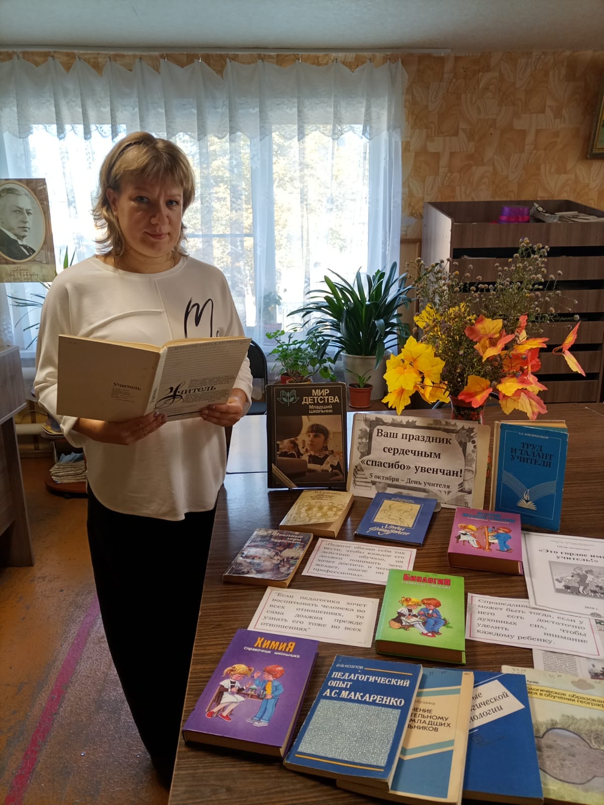 Накануне праздника в центральной библиотеке проведено литературное путешествие «Учитель на страницах книг». Учитель, ученик, школа. Эти слова неразрывно связаны между собой. Богат и многогранен мир школы, воссозданный в произведениях художественной литературы. В романах, повестях, рассказах школьной тематики предстаёт перед нами образ Учителя, Школы, Ученика, затрагиваются разнообразные педагогические вопросы. На данном мероприятии библиограф познакомила участников с подборкой книг о школе и учителях, имеющихся в фонде библиотеки. К этой дате оформлена выставка-поздравление «Ваш праздник сердечным «спасибо» увенчан!
