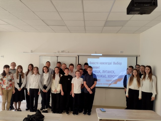Центральная библиотека организовала для учеников средних классов познавательный час “Вместе – большая семья”. Мероприятие, приуроченное ко Дню воссоединения ДНР, ЛНР, Херсонской и Запорожской областей, имело своей целью расширение знаний учащихся об истории России. Библиотекарь представила историческую справку о воссоединении, ребята посмотрели исторические видеоролики и послушали выступление Лушкина Дмитрия, который прочитал стихотворение о России.