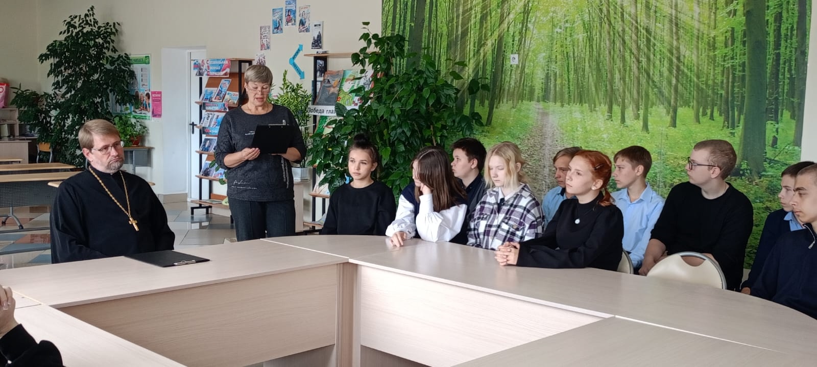 Урок-диалог “Сила слова”, посвященный одному из бедствий духовной и культурной жизни современного человека – сквернословию, прошёл в центральной библиотеке. На встречу с учениками Избердеевской средней школы пришел настоятель храма Иоанна Богослова в селе Петровском, Благочинный Петровского благочиннического округа отец Артемий (Аксенов).