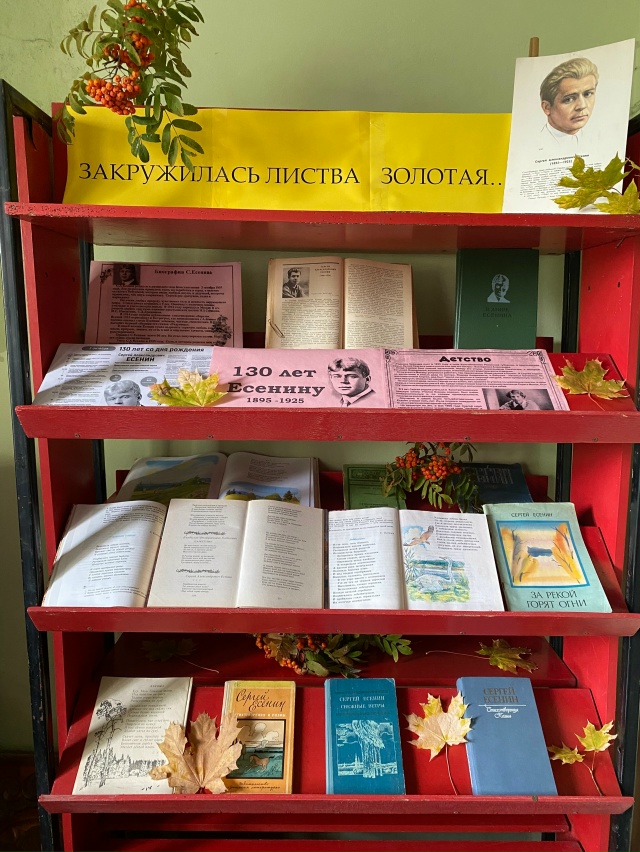 3 октября исполняется 130 лет со дня рождения известного русского поэта, лирика Сергея Александровича Есенина. К этой юбилейной дате в Боголюбовской библиотеке подготовлена книжная выставка «Закружилась листва золотая…». Стихи Есенина по-прежнему остаются актуальными и близкими каждому читателю. Его строки продолжают трогать сердца, отражая вечные темы любви, природы и жизни, некоторые из них положены на музыку и обрели новую жизнь в качестве песен и романсов.