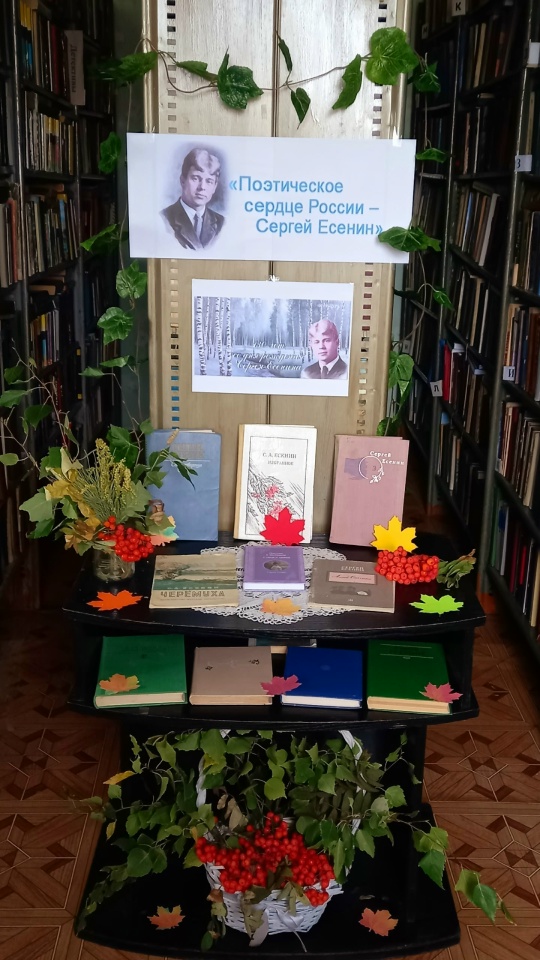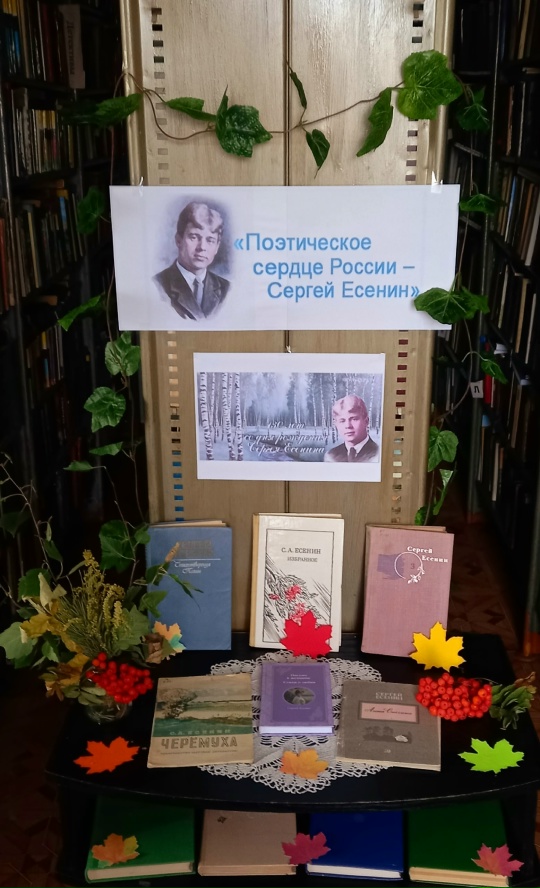 К юбилейной дате Новоюрьевская сельская библиотека оформила книжную выставку «Поэтическое сердце России – Сергей Есенин». На выставке представлены издания, включающие сборники стихотворений и собрания сочинений Есенина, в которых он с любовью воспел красоту русской природы. Поэтический язык Есенина отличается мелодичностью и лиричностью, что позволяет читателю увидеть описываемые образы наяву.