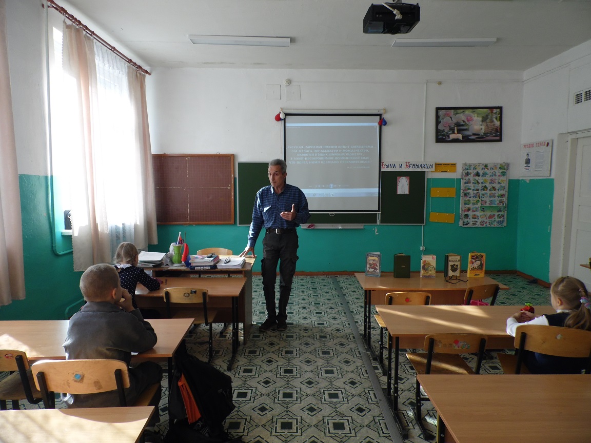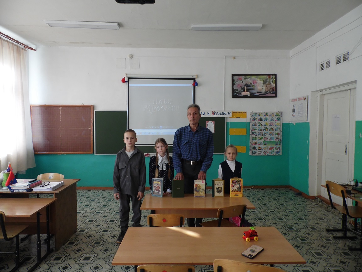 Заведующий библиотекой познакомил учеников с удивительным, сказочным и напевным миром – миром русских былин. Сказатели чуть приукрашивали события, но они происходили в реальной жизни, а все их персонажи имеют исторические прототипы. Былинные богатыри олицетворяют собой мужчину–воина, защищающего русскую землю. И нет таких препятствий, которые не смогли одолеть бы русские богатыри. Таким реальным богатырём и был Илья Муромец, а за его праведные дела по защите своего отечества он был причислен русской Православной церковью к лику святых.
