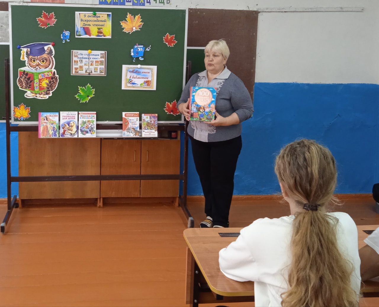 К Всероссийскому дню чтения, который отмечается 9 октября, для учащихся Садостроевского филиала Кочетовской СОШ, библиотекарь Григорьева Н.В провела познавательный час “По страницам любимых книг”.