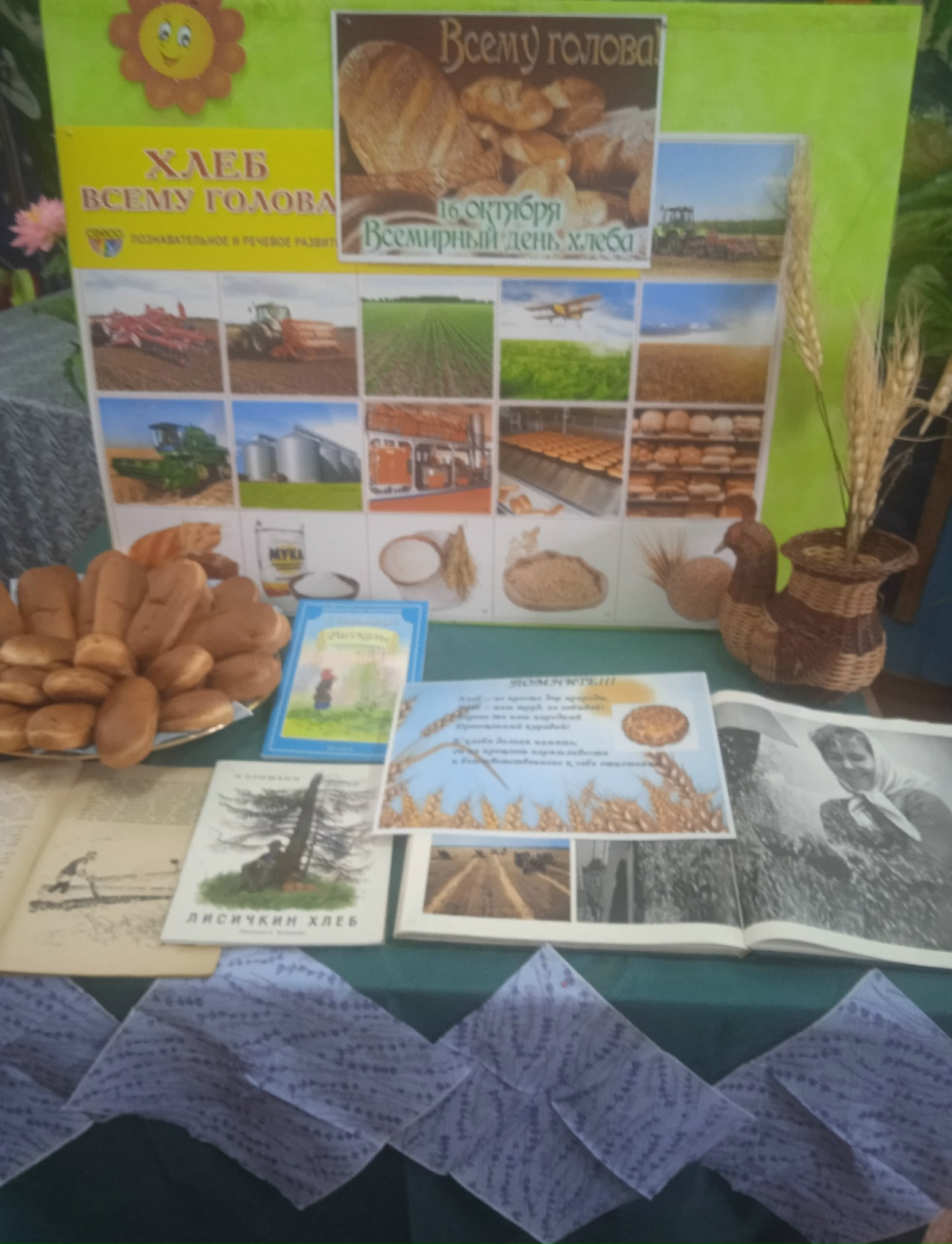 Хлеб-символ жизни, здоровья и благополучия. 16 октября отмечается Всемирный день хлеба.Для учащихся Садостроевского филиала Кочетовской СОШ библиотекарь Григорьева Н.В, провела беседу у выставки