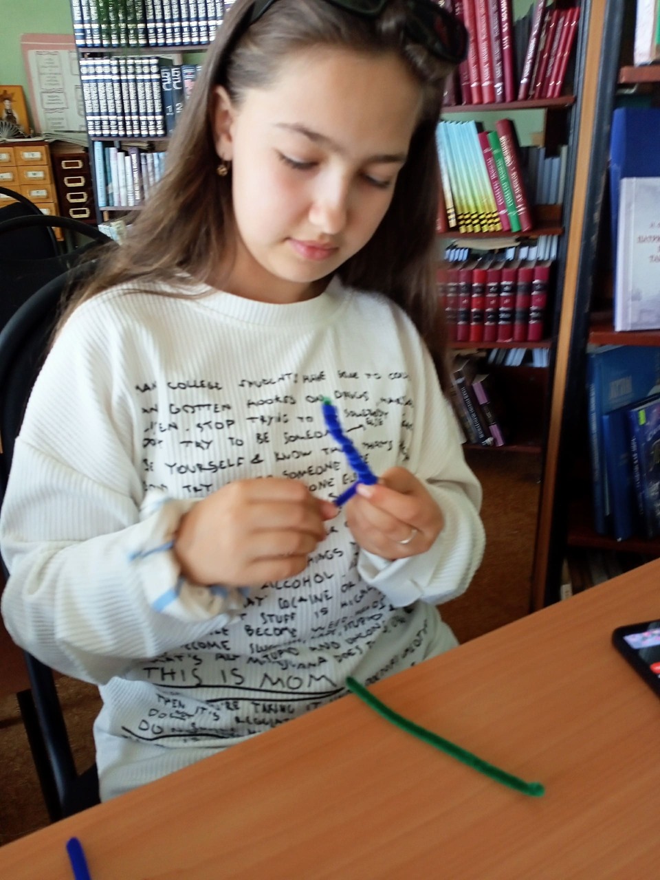 Участники собрались с большим желанием и воодушевлением.Библиотекарь подробно объяснила участникам технику работы с проволокой, поделилась интересными секретами создания объёмных фигур и рассказала о значимости осенних праздников, особенно Покрова.