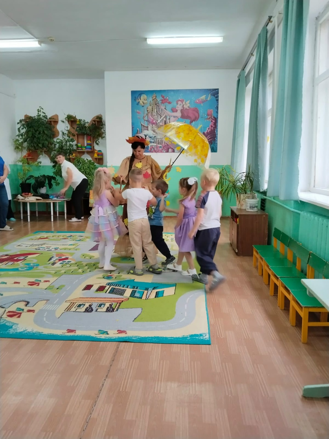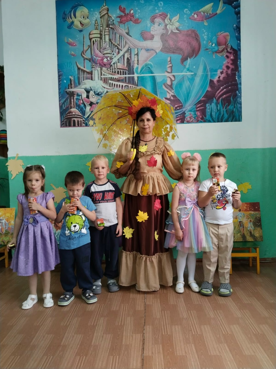 Осень – настоящее чудо! Это время, когда природа превращается в волшебную картину, раскрашенную самыми яркими красками. Именно этому прекрасному времени года было посвящено замечательное праздничное мероприятие “Осень золотая”, которое прошло в Шапкинском филиале детского сада “Солнышко” совместно с Шапкинской взрослой библиотекой. На праздник к ребятам пожаловала сама “Золотая осень”! Дети с удовольствием пели песни про осень, читали стихи, весело танцевали с зонтиками и участвовали в играх. Праздник получился по-настоящему веселым и запоминающим.
