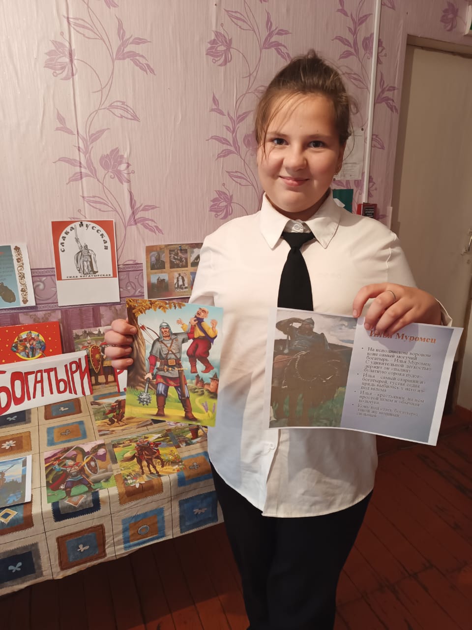 Нет ни одного человека, выросшего в России, который не слышал бы слова “былина” и не мог бы назвать имена русских богатырей. Почти все назовут Илью Муромца, Добрыню Никитича и Алёшу Поповича. А между тем богатырей было гораздо больше. Чтобы расширить кругозор учащихся и познакомить с другими былинными богатырями, с рассказами о них Покрово-Васильевский сельский филиал организовал выставку-обзор “Богатыри русские”, на которой представлены материалы о русских богатырях, об их оружии и доспехах, книги о былинах и многое другое. Ждем всех ребят.
