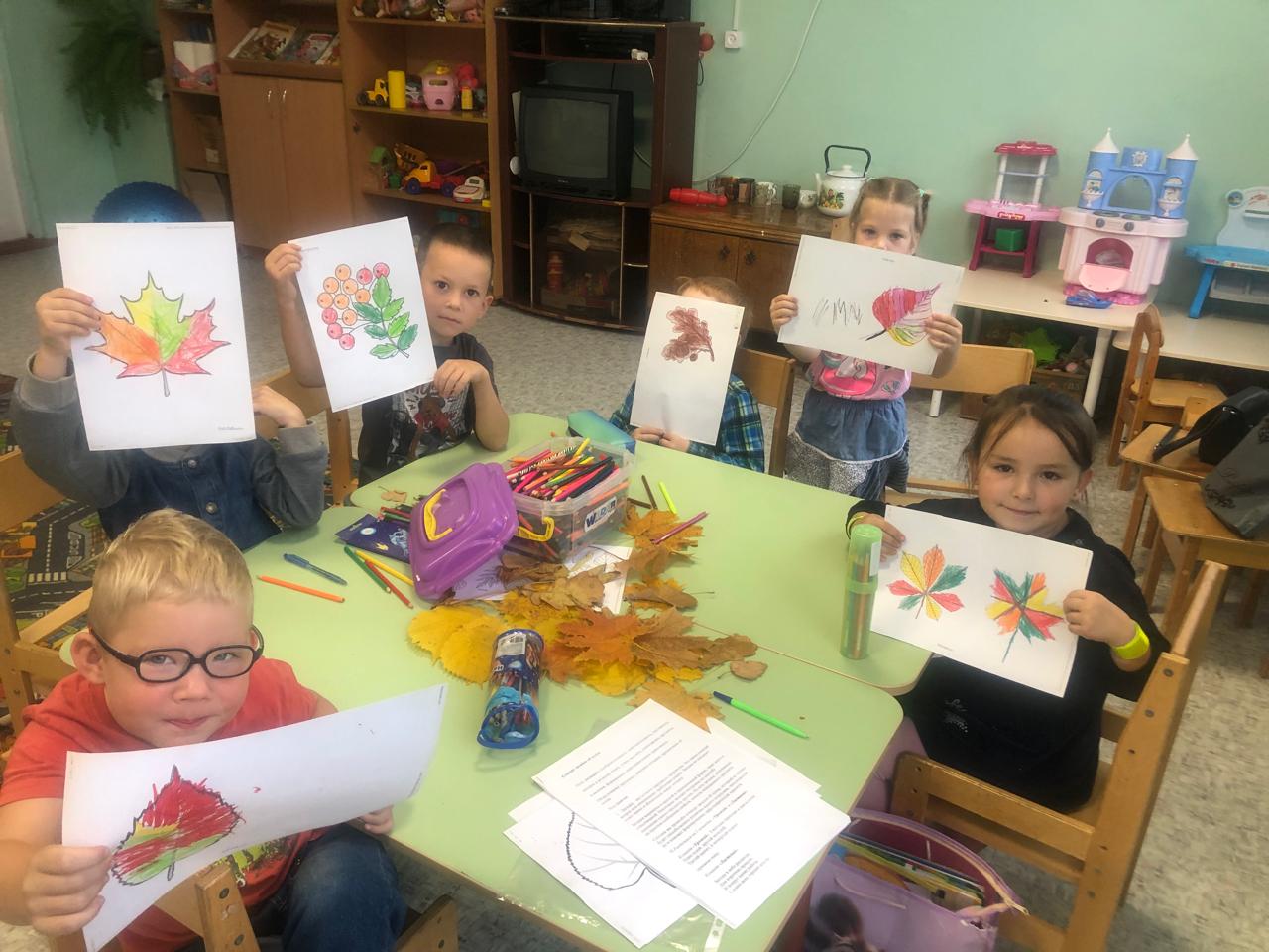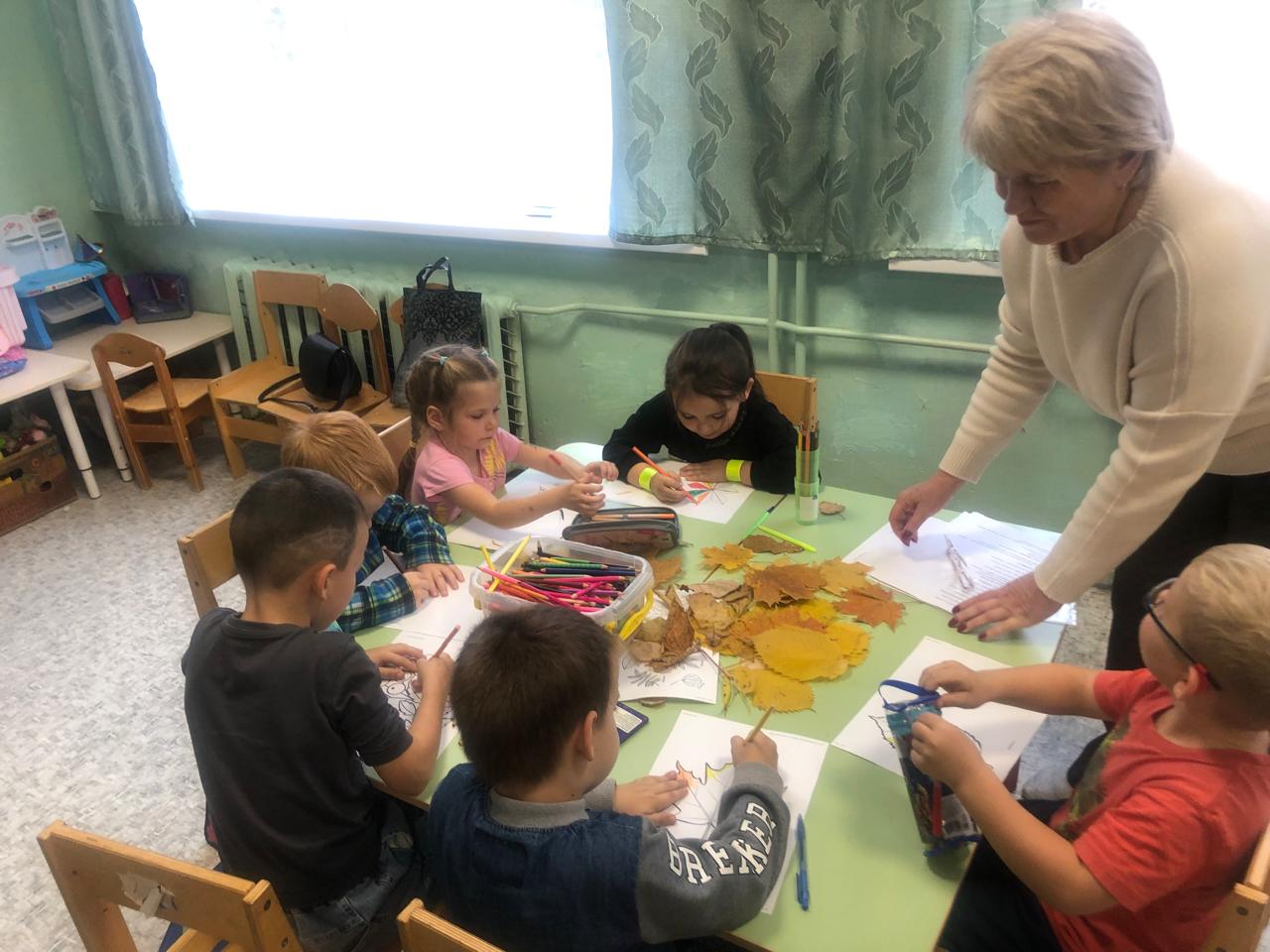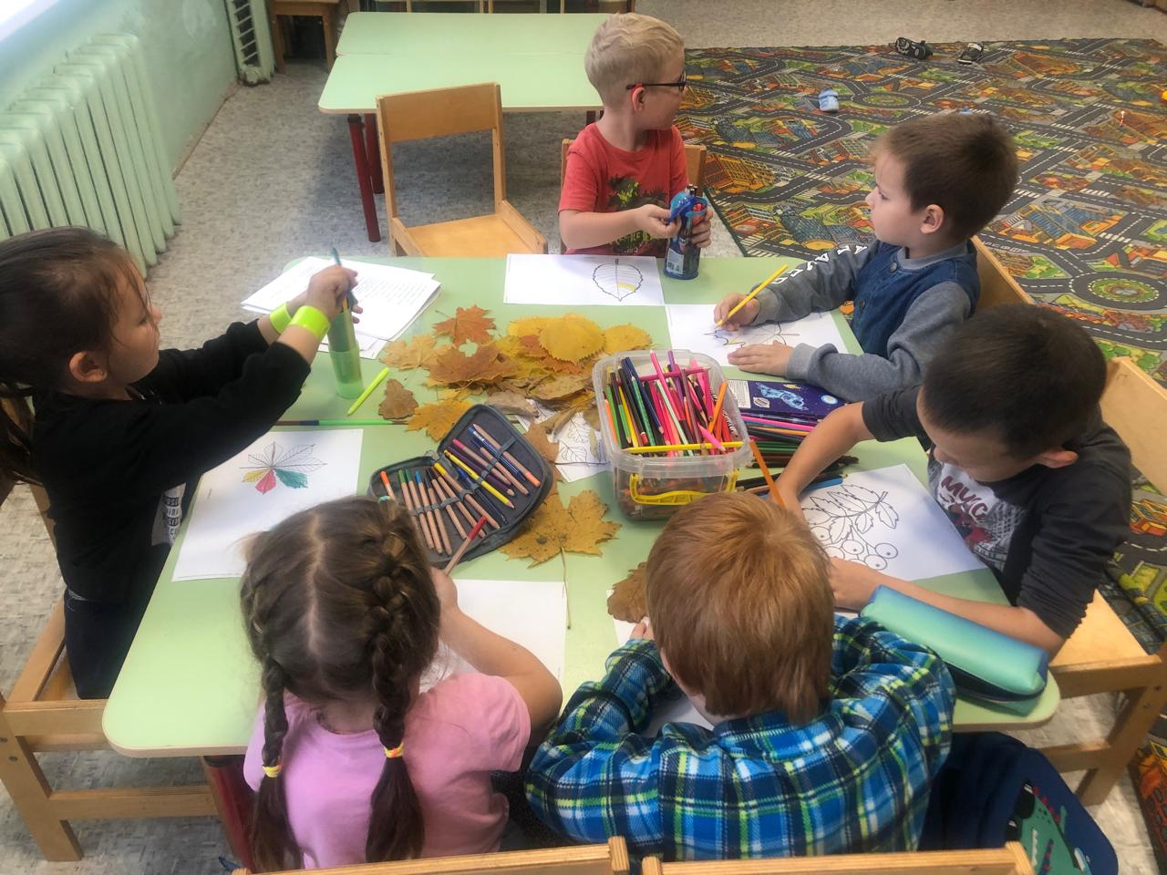 На занятии дети познакомились с осенними месяцами, увидели, как выглядит золотая осень и постарались отразить это в своих рисунках. На творческом занятии ребята стали художниками и разукрасили осенние листочки.