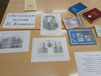 В Шиновской сельской библиотеке МБУК “БКМО” прошел литературный час «По аллеям жизни И. Бунина», посвященный юбилейной дате известного прозаика и поэта. Читатели библиотеки познакомились с биографией и творчеством известного писателя – автора таких произведений, как «Темные аллеи», « Жизнь Арсеньева», «Господин из Сан-Франциско»,«Солнечный удар», «Митина любовь», «Антоновские яблоки», «Жизнь Арсеньева», «Окаянные дни». Библиотекарь Арямнова Н.В. в ходе беседы отметила, что Иван Алексеевич Бунин – великий мастер слова, его талант многогранен, а биография – это история творца-странника, который, находясь за границей, сумел прославить свою Родину и продемонстрировать исключительный художественный потенциал литературы Серебряного века, став символом духовной силы и таланта и оставив неизгладимый след в мировой литературе. Участники мероприятия зачитывали отрывки из произведений И.Бунина и читали стихотворение “Листопад”, отражающее неповторимую красоту осени – времени года, когда родился писатель.