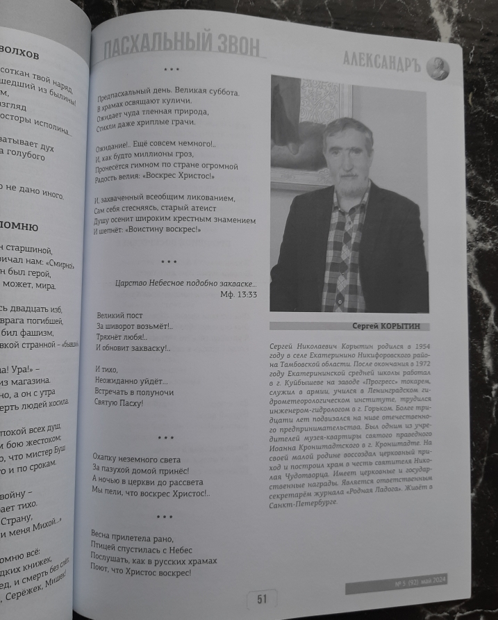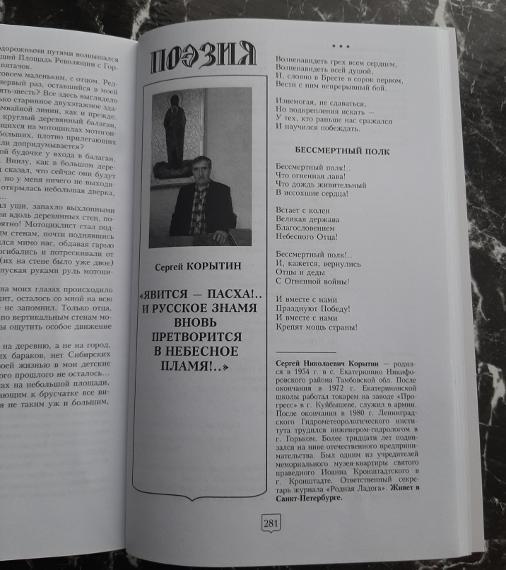 Сергей Николаевич на протяжении многих лет принимает активное участие в работе журнала “Родная Ладога”, также является автором печатающимся в этом журнале и журнале “Александр”. Имеет два собственных сборника стихов “Духовный фронт” и “Поле битвы”.