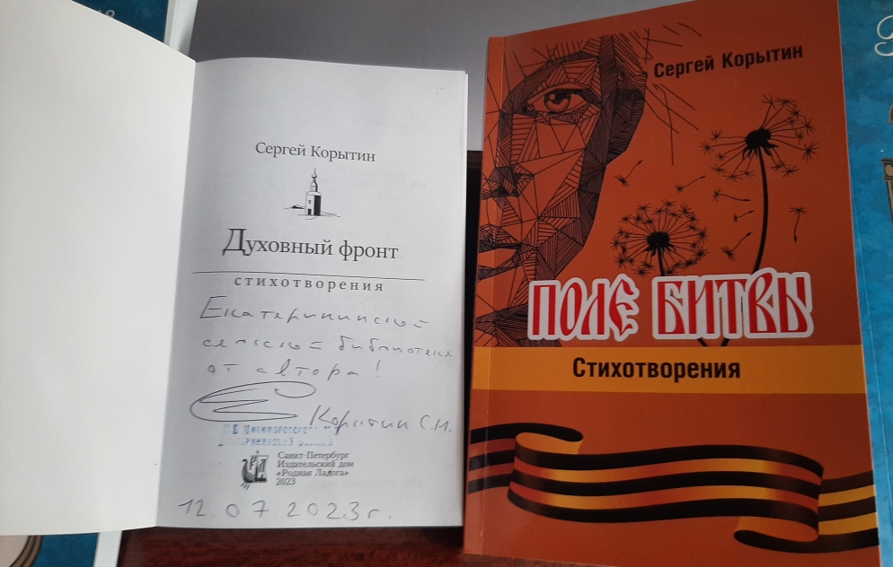В библиотеке оформлена книжная выставка “Певец души” из книг со стихами автора, подаренных лично Сергеем Николаевичем Екатерининскому филиалу.