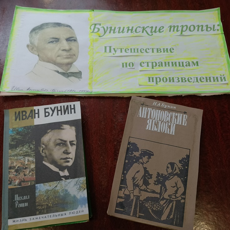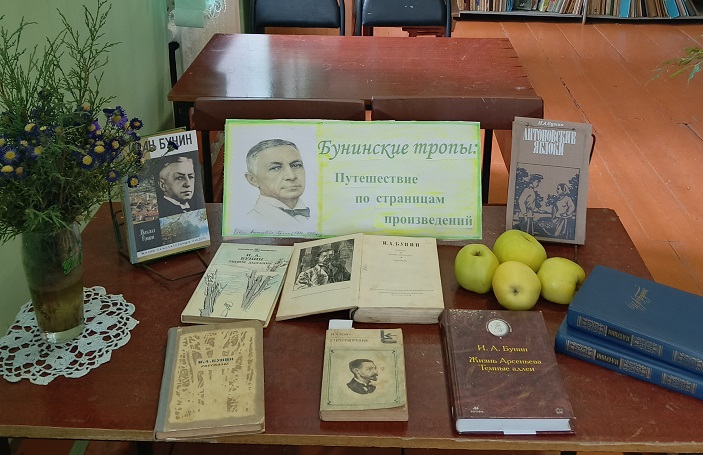 К 155-летию со дня рождения известного русского поэта и писателя в Гагаринской сельской библиотеке оформлена книжная выставка «Бунинские тропы: Путешествие по страницам произведений». Бунин писал абсолютно обо всем, что его окружало, и в большинстве случаев темы его произведений совпадали с разными периодами его жизни. Много стихов он написал для детей «Первый снег», «Детство», «Листопад», «Осень» и другие. Произведения Бунина неповторимы, они наполнены совершенно особенной поэзией и яркими, емкими образами, вошедшими в бесценную копилку мировой литературы. Он очень четко отражает картины времен года, природы. Книжная выставка приглашает читателей в литературное путешествие.