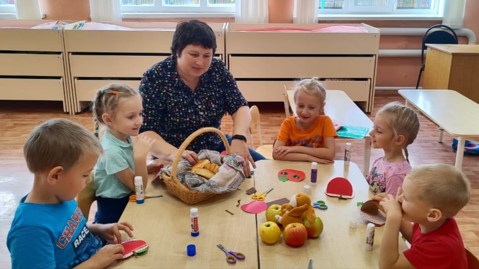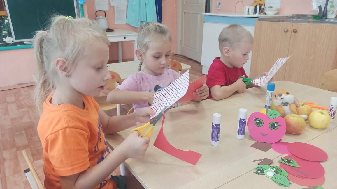 В ходе мероприятия дети узнали о сказках, в которых встречаются яблоки, послушали сказку Владимира Сутеева «Мешок яблок». После познавательной беседы пришла очередь для творчества. Ребята с удовольствием принялись за создание аппликации «Наливное яблочко» из бумаги.