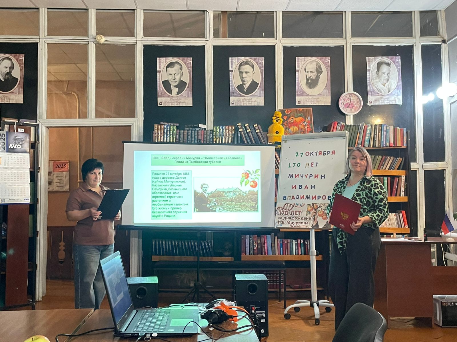 18 октября в Пичаевской централизованной библиотеке в рамках программы “Пушкинская карта” прошло познавательное мероприятие “Мичуринская клумба”. Работники библиотеки познакомили учеников с выдающимся ученым Иваном Владимировичем Мичуриным и его вкладом в сельское хозяйство и растениеводство России. Ребята услышали исторический экскурс—рассказ о жизни и научных достижениях учёного и обменялись мнениями о значимости исторического и экологического наследия И. В. Мичурина.