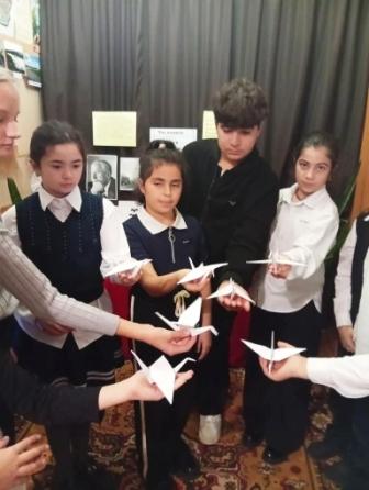 Ребята узнали много нового и познавательного, познакомились с именами героев нашего времени. Завершилось мероприятие Минутой молчания. Гостям были подарены оригами белых журавликов.