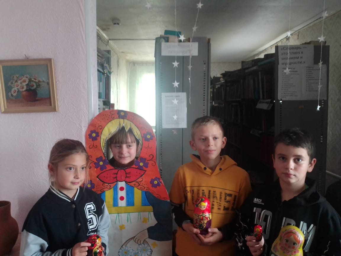 Мини -музей в библиотеке очень мал, но кое-какие предметы древности заинтересовали участников мероприятия. Библиотекарь рассказала как использовались предметы в быту, как появилась первая игрушка – матрешка в России. Загадки, пословицы , стихи, фотозоны были в программе мероприятия.