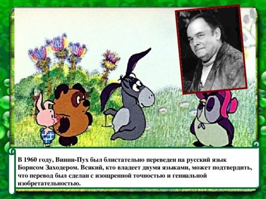«Винни–Пух» признан во всём мире как один из лучших образцов книги для семейного чтения. В книге есть всё то, что привлекает детей, но есть и то, что заставляет переживать и размышлять взрослых читателей.