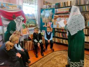 В день Покрова Пресвятой Богородицы работники культуры пригласили сельских ребят на православный час «Октябрь–батюшка настал, Покров-праздник заиграл», где показали и рассказали историю события, приведшего к празднованию Покрова. Дети узнали что такое «амофор», познакомились с композицией старинной иконы Покрова Пресвятой Богородицы, окунулись в мир русских традиций и обрядов, вспомнили праздничные пословицы и поговорки, участвовали в конкурсе скороговорок. Заряд всеобъемлющей доброты и мира в душе ребята унесли домой.