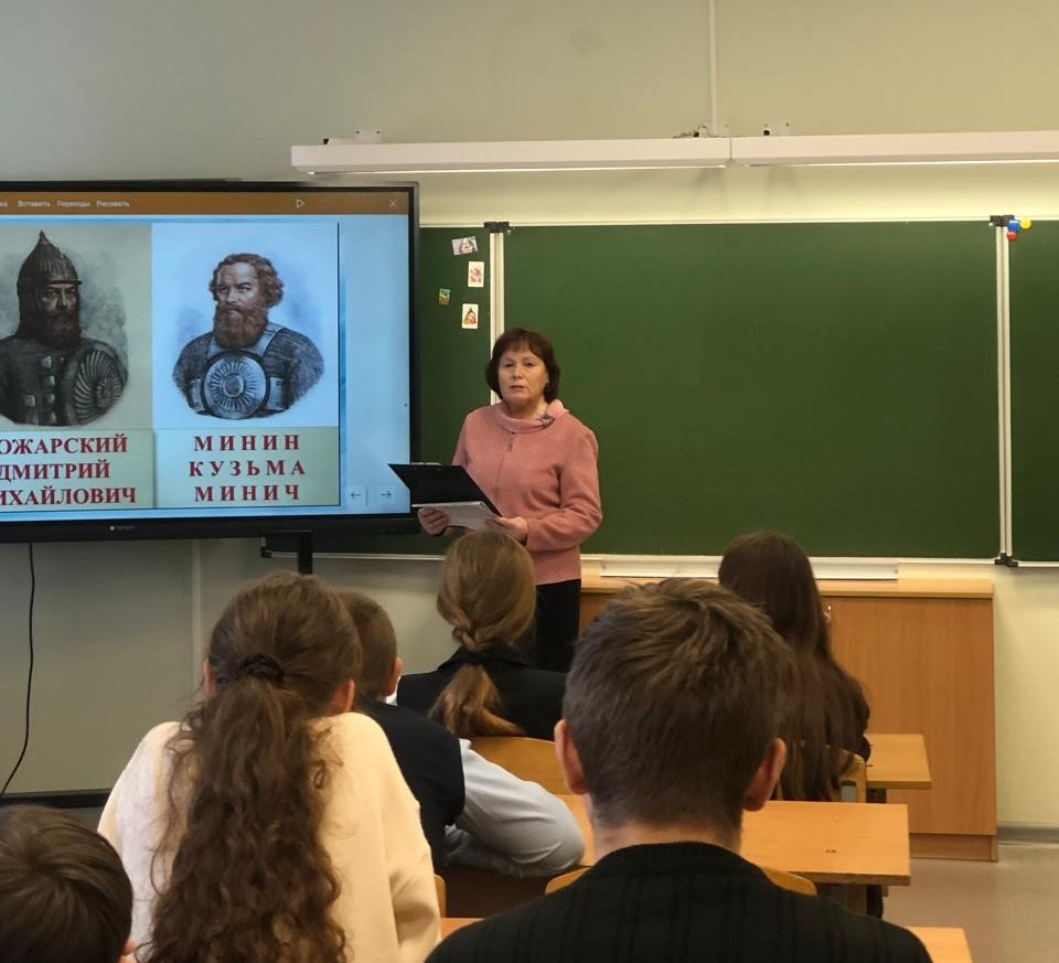 Накануне празднования Дня народного единства библиотека провела час Отечества «Святые воины – заступники России» для учащихся 9 «Б» класса средней школы. Учащиеся совершили экскурс в историческое прошлое России. В ходе мероприятия, они узнали о воинах, о святых защитниках Руси, которые служили верой и правдой, совершали подвиги во имя Отечества, были чтимы народом. Речь шла об Александре Невском, Илье Муромце, Кузьме Минине и Дмитрии Пожарском. Ребята познакомились с их ратными подвигами. Учащиеся узнали почему эти воины были причислены к лику Святых, получили много полезной информации об истории праздника.