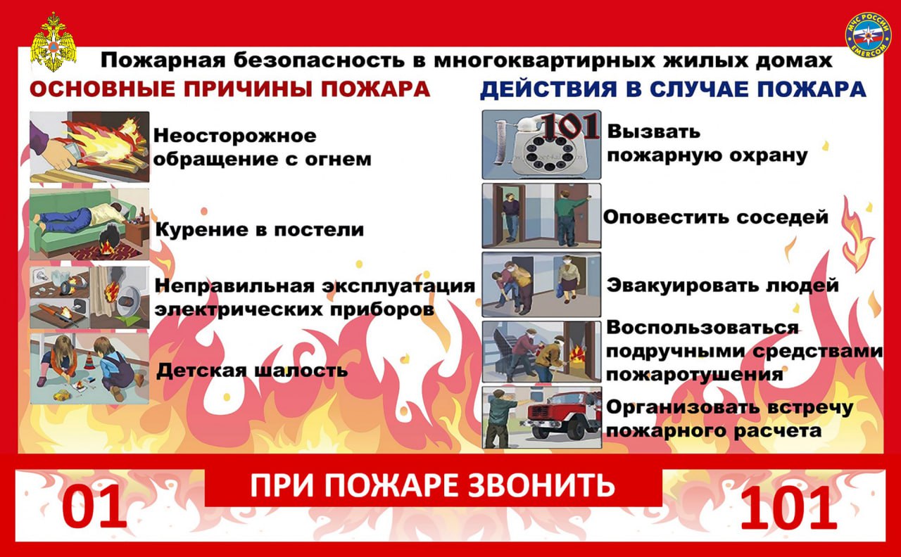Соблюдение мер пожарной безопасности является основой Вашей безопасности и людей Вас окружающих. Основными причинами возникновения пожаров в быту являются нарушения правил пожарной безопасности: неосторожное обращение с огнем; использование неисправных самодельных электронагревательных приборов; неправильное устройство печей, каминов и т.д. В целях недопущения пожаров соблюдайте правила безопасности.