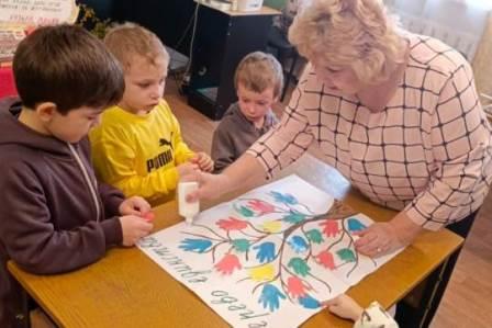 Дети познакомились с государственными символами России, пословицами о России, собрали флаг, оформили ‘ Дерево единства’.
