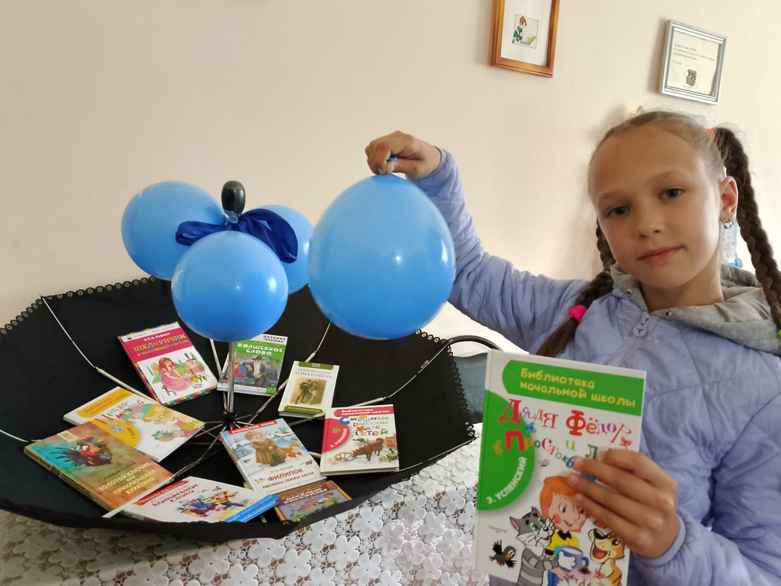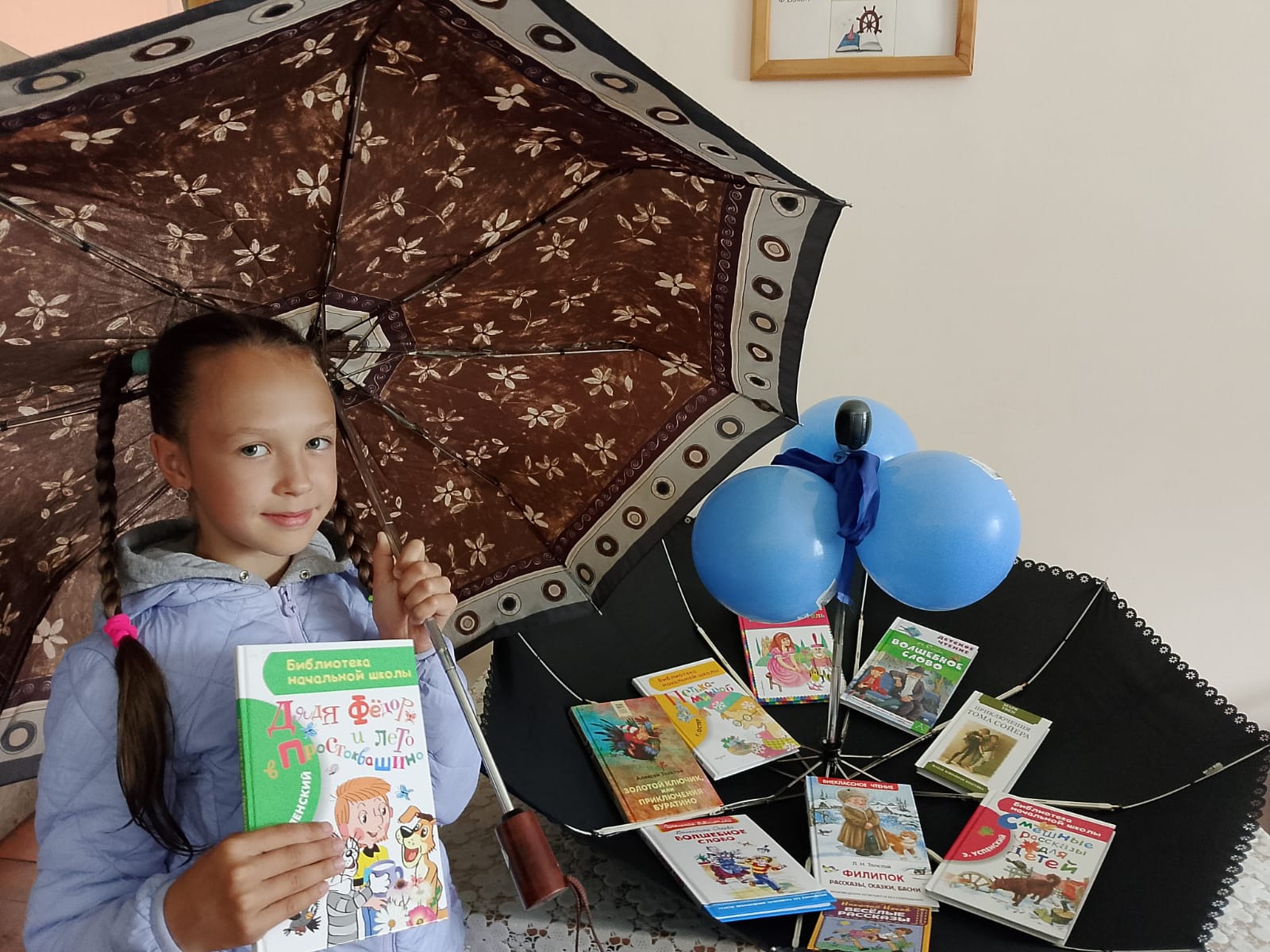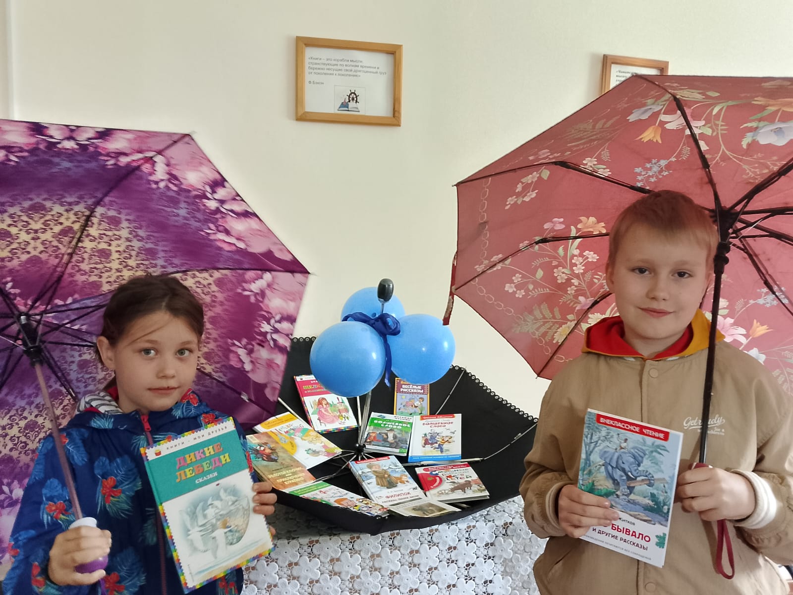Потом юные читатели сельской библиотеки п.Садовый познакомились с историей праздника «День разноцветных зонтиков». Послушали авторскую сказку Г.Б.Чебаковой «Радужный зонтик». Разобрали книжный развал «Под книжным зонтиком».