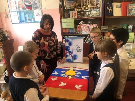 В преддверии Дня народного единства в Никольской сельской библиотеке для юных посетителей был проведен мастер-класс по изготовлению коллажа «Цветок единства». Целью мероприятия было показать в коллаже единство народов и наций. Так ребята из ладошек собирали цветок. Лепестки в форме ладошек разного цвета означают, что в России проживает много национальностей, но все мы равны. Сердцевина у цветка изображает нашу планету, а страна Россия объединяет народы и открыта для всех национальностей. Так все вместе мы создали символ, который будет напоминать каждому значение единства и согласия. В ходе мероприятия поговорили о том, какие национальности проживают в нашей огромной стране со своими традициями и обычаями. Дети с интересом слушали рассказ об истории празднования Дня народного единства и, как связан он с именами славных патриотов России – Козьмы Минина и Дмитрия Пожарского.