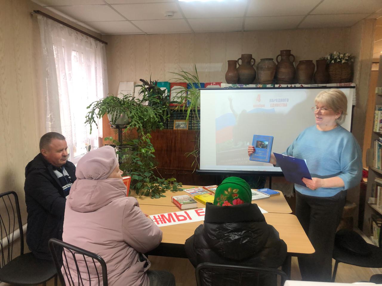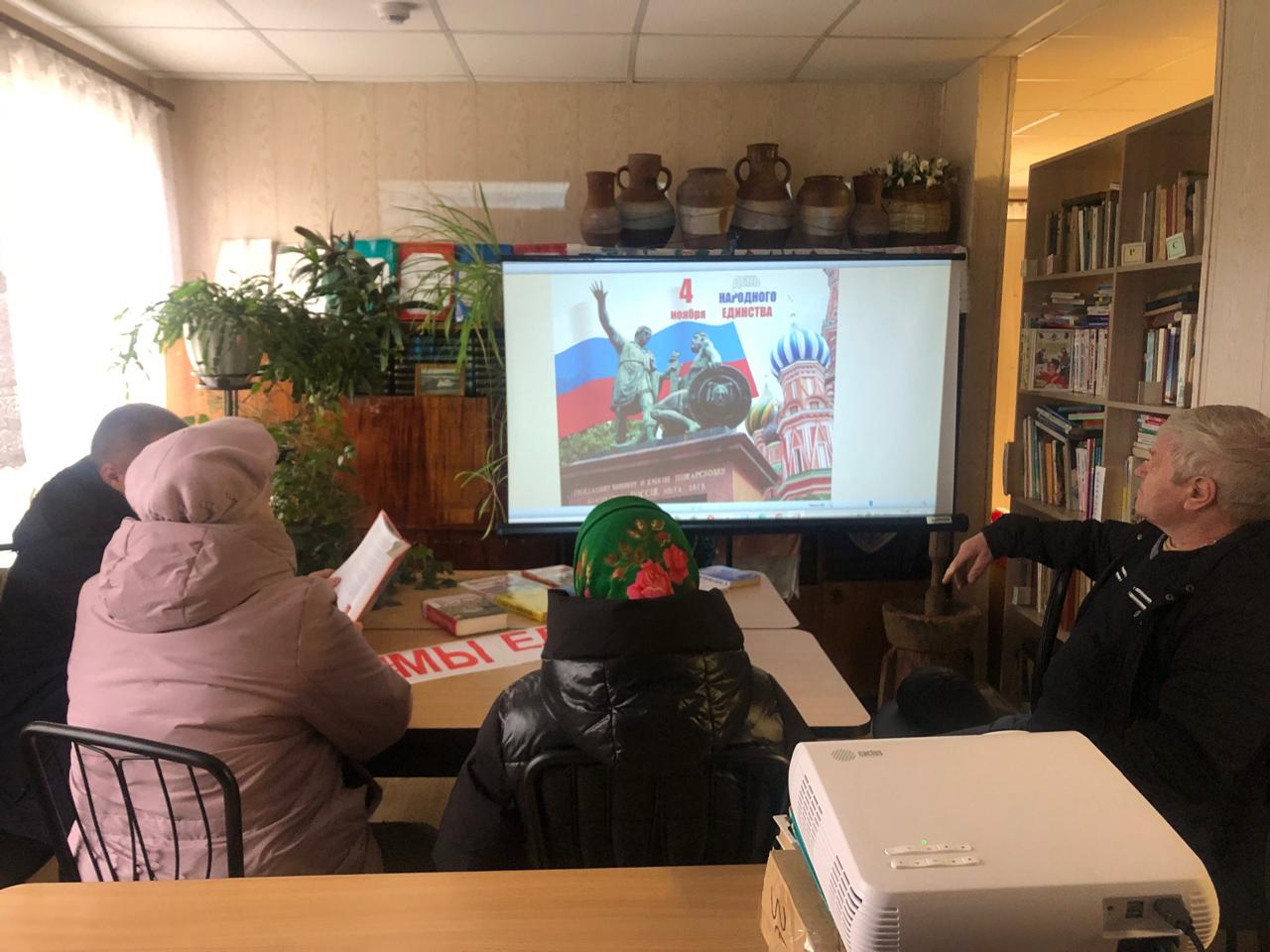 Также в библиотеке прошел час патриотизма “И только в единстве сила России”. Библиотекарь рассказал читателям об истории установления праздника, о том, как народное ополчение добилось освобождения столицы от иноземцев, о примерах единения народов России в годы суровых испытаний.