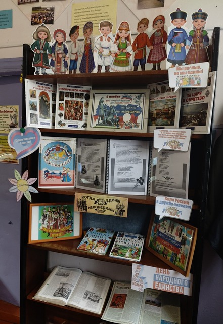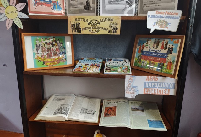 В филиале МБУК “Межпоселенческая библиотека Тамбовского муниципального округа” в селе Лысые Горы к знаменательной дате оформлена выставка “Когда мы едины, мы не победимы” и проведен исторический экскурс “И только в единстве сила России”.