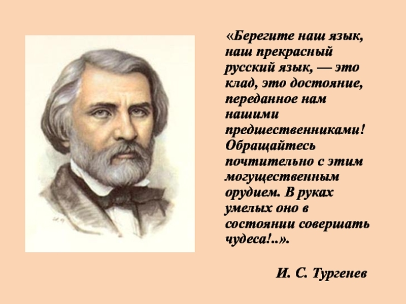 Завершился литературный час обращением Тургенева к читателям: «Берегите наш язык, наш прекрасный русский язык — это клад, это достояние, переданное нам нашими предшественниками! Обращайтесь почтительно с этим могущественным орудием; в руках умелых оно в состоянии совершать чудеса!»