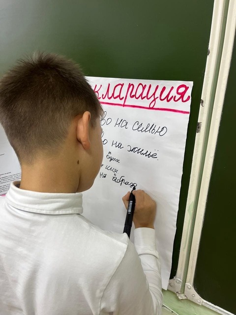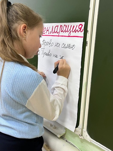 Ребята не только познакомились с ключевыми понятиями – “декларация”, “права”, “обязанности”, но и в доступной форме узнали о своих основных правах, таких как право на семью, имя, отдых и образование.