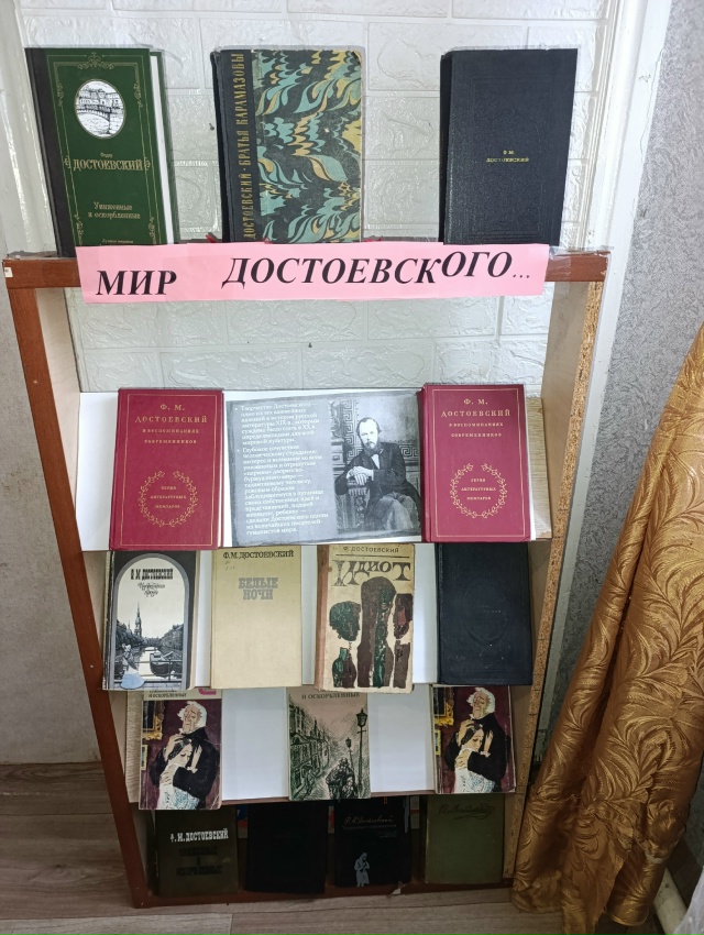 10 ноября в Спасской сельской библиотеке оформлена книжная выставка «Мир Достоевского», приуроченная ко дню рождению писателя Федора Михайловича Достоевского.