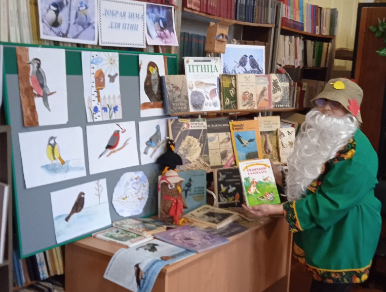 Гостем мероприятия стал старичок-лесовичок, который познакомил детей с пословицами, поговорками и загадками о наших пернатых друзьях, прочитал некоторые стихотворения о птицах, показал детские рисунки и рассказал о книгах, которые были представлены на выставке, отметив, что очень много разнообразной литературы про птиц имеется в библиотеке.