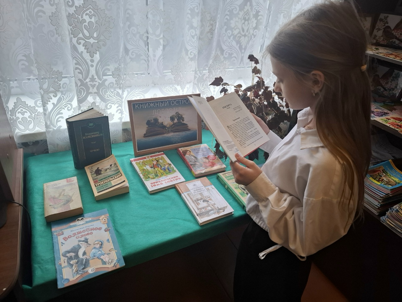 На книжной выставке представлены художественные произведения о воспитании доброты, о милосердии, об умении радоваться за других и сопереживать. Для детей 3класса, провела урок доброты.