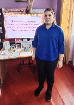 20 ноября в Хоботовской сельской библиотеке состоялся поэтический час “Красота, живущая в стихах”. Именно поэзия учит нас видеть красоту окружающего мира, открывать души людей, делает человека добрее, красивее, придаёт чувства любви и сострадания. Поэтому нельзя не любить стихи про пушистую вербу, белоствольную берёзу, ландыш серебристый, про одинокий дуб. Участники мероприятия познакомились с творчеством Первомайских поэтов, чей талант позволяет почувствовать красоту родного края. Мероприятие дополнило выступление Диляны Исаевой, она прочитала своё авторское стихотворение о красоте духовного о мира. А также прозвучали стихи великих поэтов- С. Есенина, А. Пушкина, М. Цветаевой, А. Ахматовой ,Б. Окуджава.