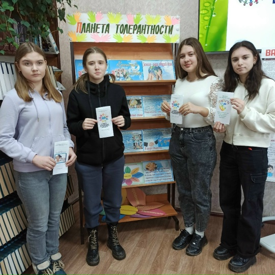 В Центральной библиотеке им. Ю. А. Ознобишина прошла акция «Мир доброты», посвященная Международному дню толерантности. В рамках акции ребята узнали, что такое «толерантность», познакомились с историей Международного дня толерантности. Получили в подарок информационные листовки с высказываниями о толерантности и памятки о правилах уважительного общения. Библиотекарь Марина Девицкая познакомила с произведениями художественной литературы, в которых озвучены идеи толерантности.
