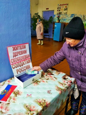 Работники культуры деревни Скобелевка организовали волонтерский центр «Союз неравнодушных сердец». В центре отливают окопные свечи, организовывают сбор гуманитарной помощи и отправку ее в районный центр в благотворительный фонд «Забота», проводят благотворительные концерты, готовят домашнюю еду и пекут « вкусняшки» для ребят на СВО. Руководители центра принимают участие в плетении маскировочных сетей. Вместе мы победим!