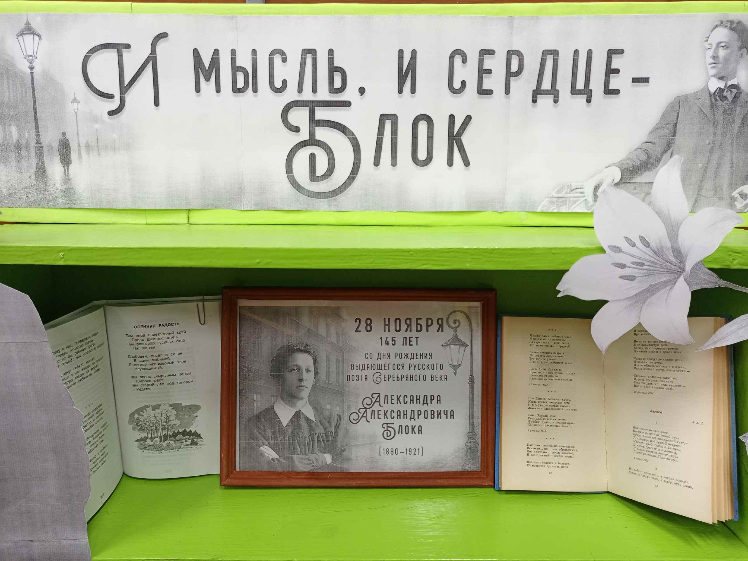 К юбилею писателя в Зеленогайском сельском филиале оформлена выставка-юбилей “И мысль, и сердце – Блок”. Приглашаем читателей прикоснуться к творчеству, попытаться заглянуть в мир чувств Александра Блока.