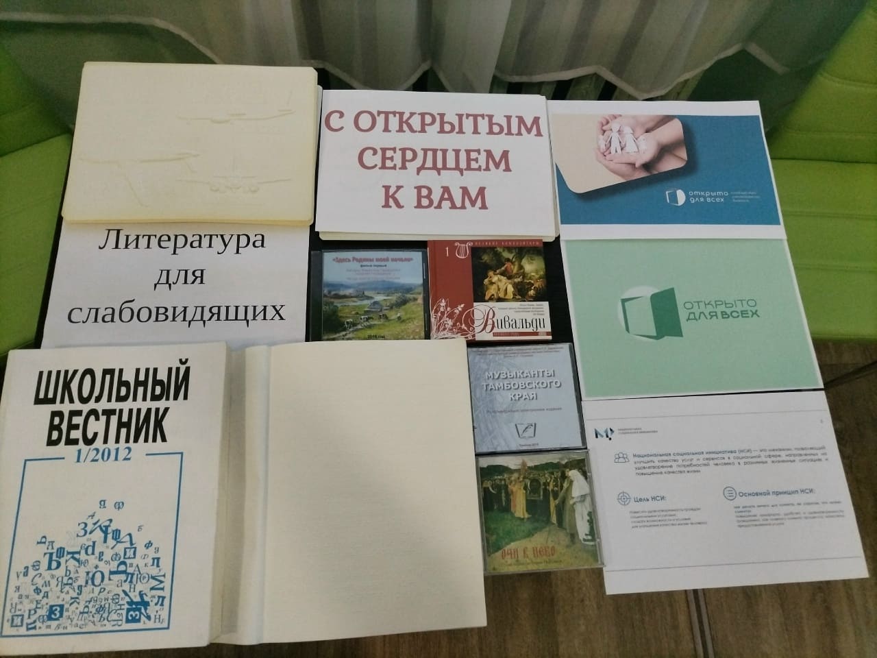 С 24 по 30 ноября проходит региональная неделя “Открыто для всех” . Главной целью недели является: повысить осведомленность общества, изменить взгляды и стереотипы. В рамках Всероссийской недели «Открыто для всех» в МБУК “Межпоселенческая библиотека Тамбовского муниципального округа” проведен информационный час «Открыто для всех» и оформлена книжная выставка “С открытым сердцем к вам”. Мероприятие направлено на информирование читателей нашей библиотеки о развитии инклюзивной среды, объединяя людей с инвалидностью и их семьи.