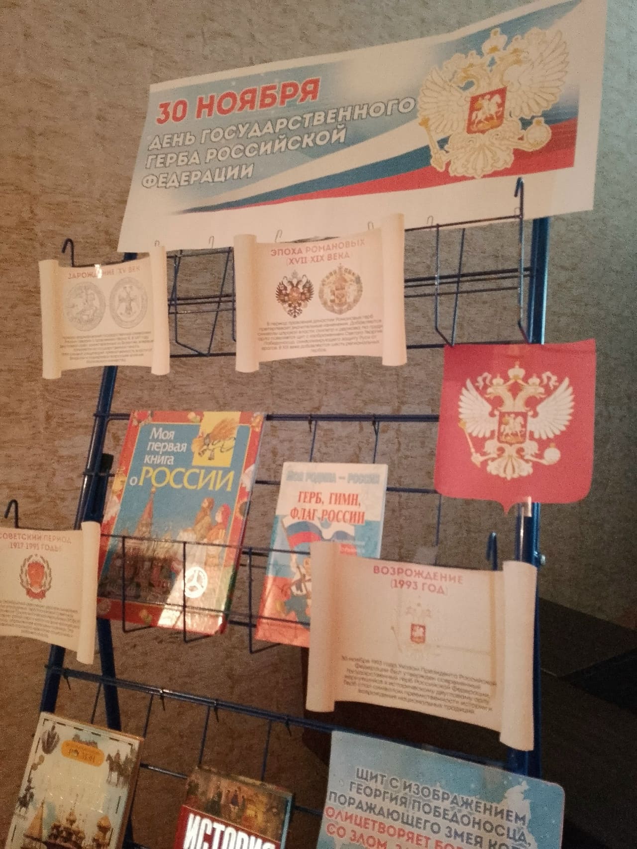 В рамках празднования в филиале МБУК “Межпоселенческая библиотека Тамбовского муниципального округа Тамбовской области” села Селезни оформлена книжно-иллюстрированная выставка «День государственного герба РФ».